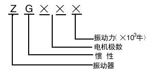例:ZG410為極對數(shù)四極,振動力為(10000)牛的慣性振動器。